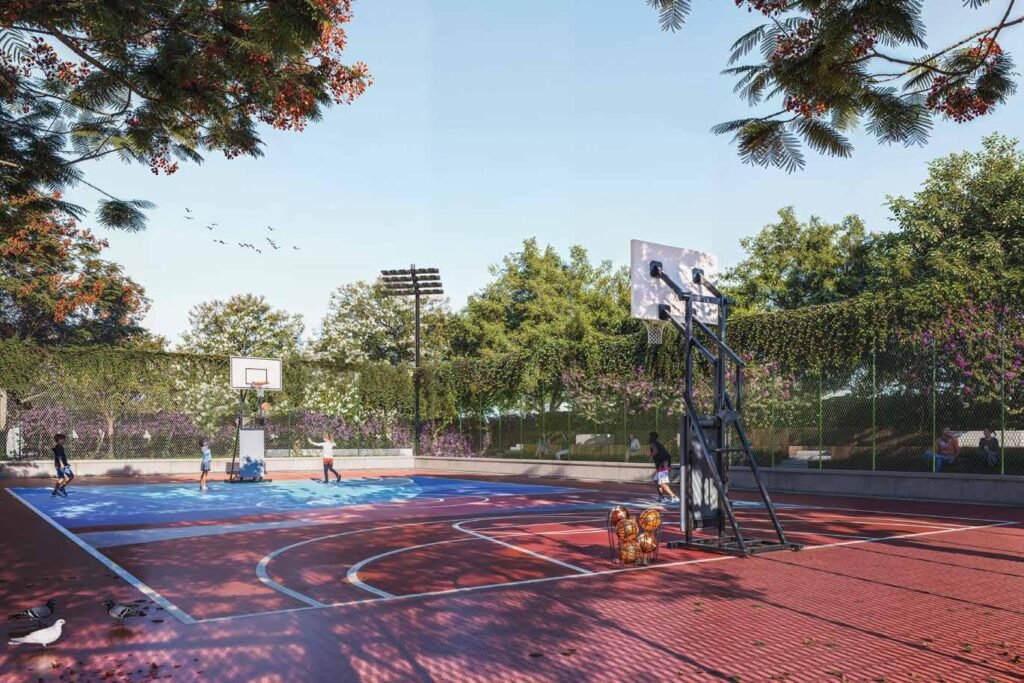 Dedicated outdoor courts for sports like tennis, basketball, and more — encouraging an active and energetic lifestyle.